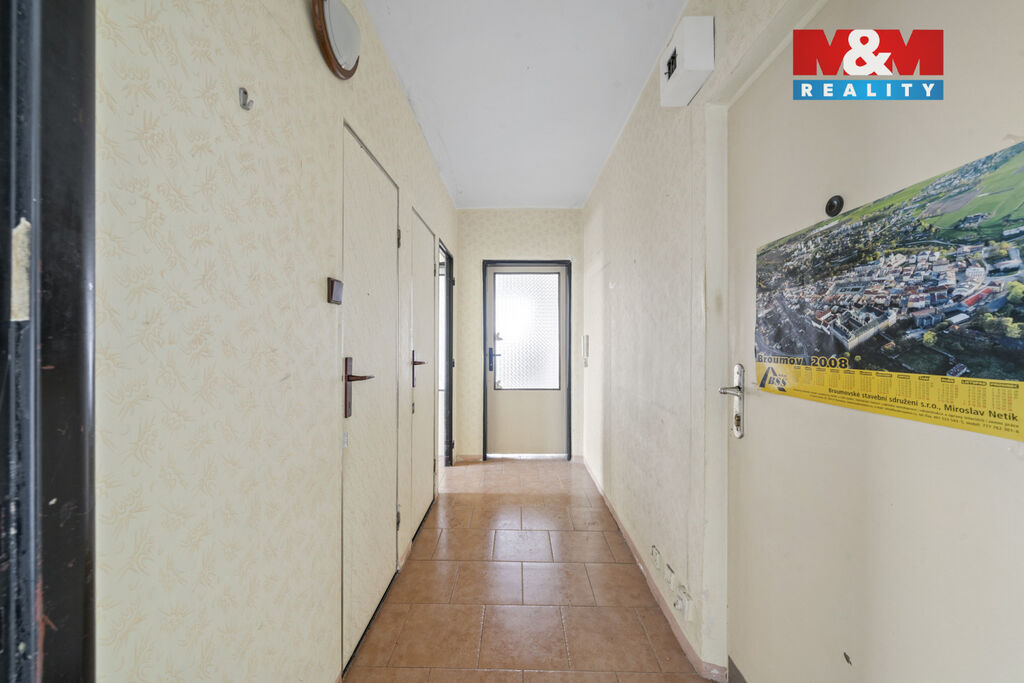 Prodej bytu 3+1 s výtahem v osobním vlastnictví v klidné části Broumova o užitné ploše 70 m². Bytová jednotka je ve 4 patře a před částečnou rekonstrukcí avšak v dobrém stavu. Dispozičně dobře řešené pro rodinné bydlení. Lokalita bytu je v klidné části obce a přesto se snadnou dostupností veškerých služeb a občanské vybavenosti. Nepropásněte tuto jedinečnou příležitost ke koupi bytu s vlastním kouskem přírody. Pro více informací nás neváhejte kontaktovat.