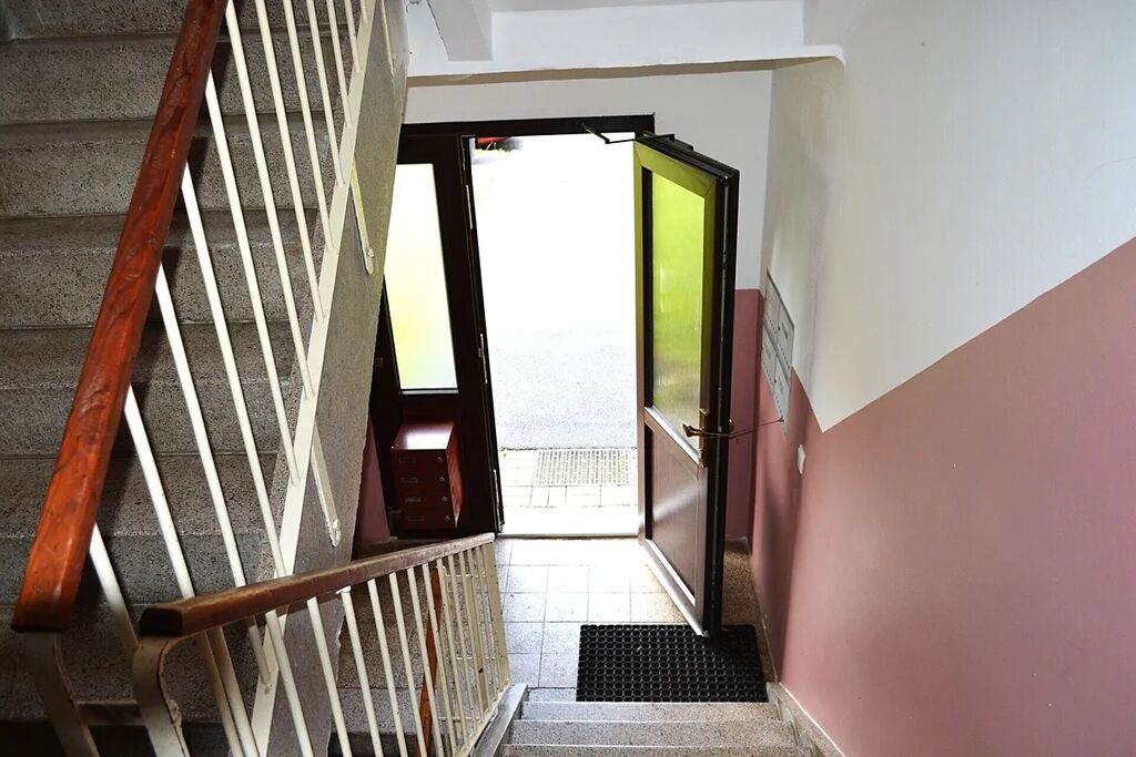Celý bytový dům je po kompletní revitalizaci – nová fasáda, opravené společné prostory, zrekonstruované schodiště, upravené okolí se zelení a parkováním v blízkosti domu.