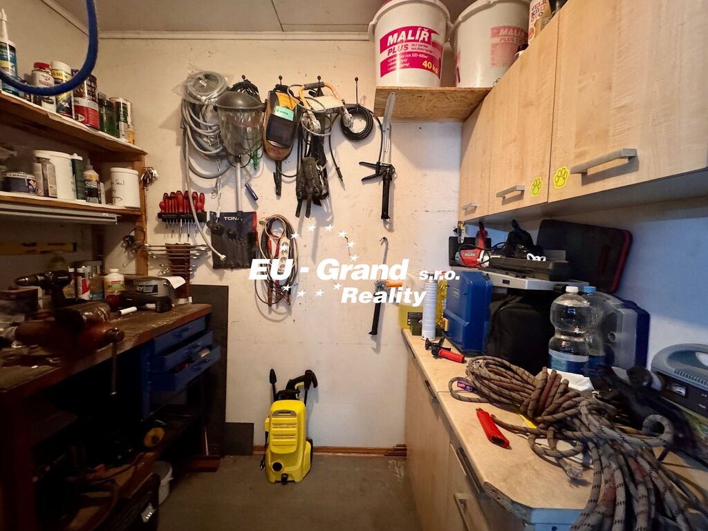 Přízemí: obývací pokoj propojený s kuchyní, prádelna s WC, technická místnost, garáž s dílnou.