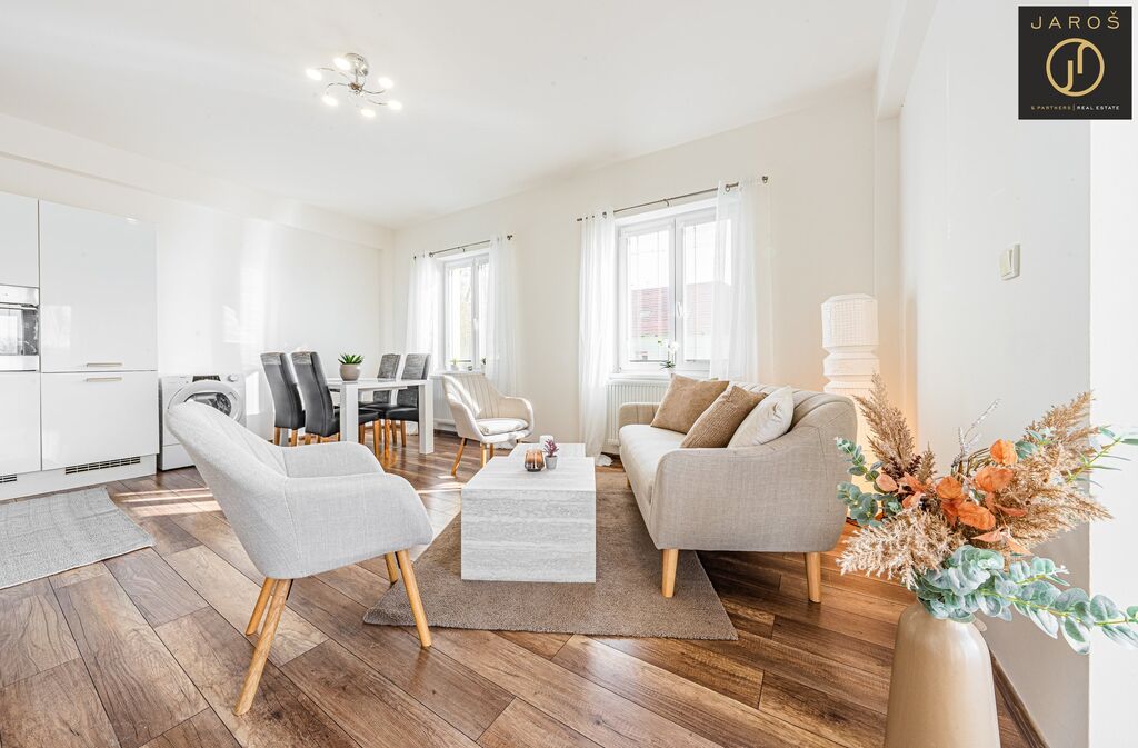 Nabízíme k prodeji světlý a vzdušný byt 2+kk o ploše 60,7 m² s velkou terasou, sklepem a parkovacím stáním v klidné části Předměřic nad Jizerou. Byt se nachází ve zvýšeném přízemí menšího bytového domu a je připraven k okamžitému nastěhování nebo k pronájmu.