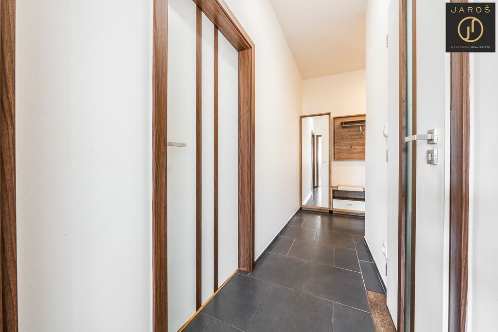 Dominantou bytu je terasa o ploše 35,3 m² s jihovýchodní orientací, ideální pro posezení, gril či vířivku. Vytápění zajišťuje vlastní elektrický kotel, ohřev vody bojler. K bytu náleží sklep (3,8 m²) a parkovací místo přímo u domu.