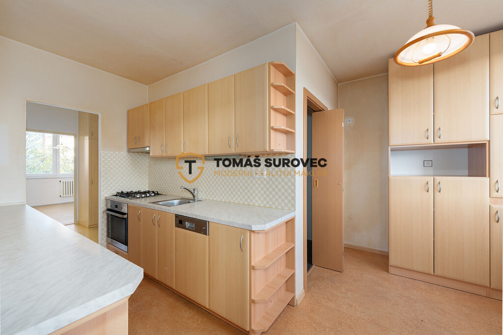 Byt 3+1 o užitné ploše 77 m² se nachází ve 3. patře panelového domu v centru Otrokovic, na ulici Obchodní 1321. K bytu patří lodžie, sklep a také společná místnost v přízemí, kterou využívá pouze jeden soused – ideální na kola, kočárek nebo sezónní věci. Na patře jsou jen dva byty, takže vás nebude rušit žádný provoz.