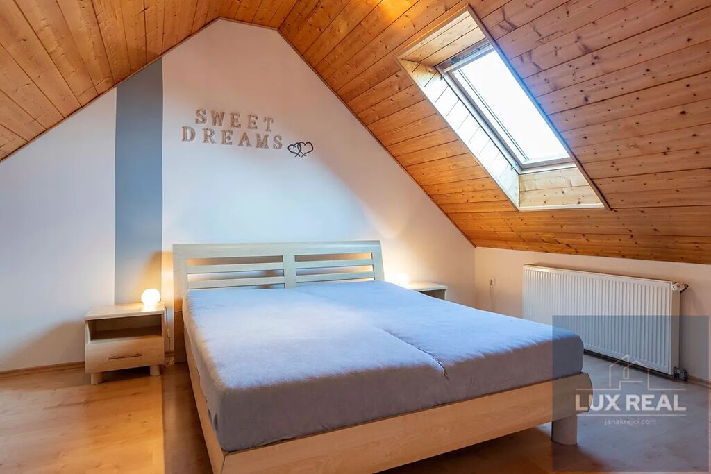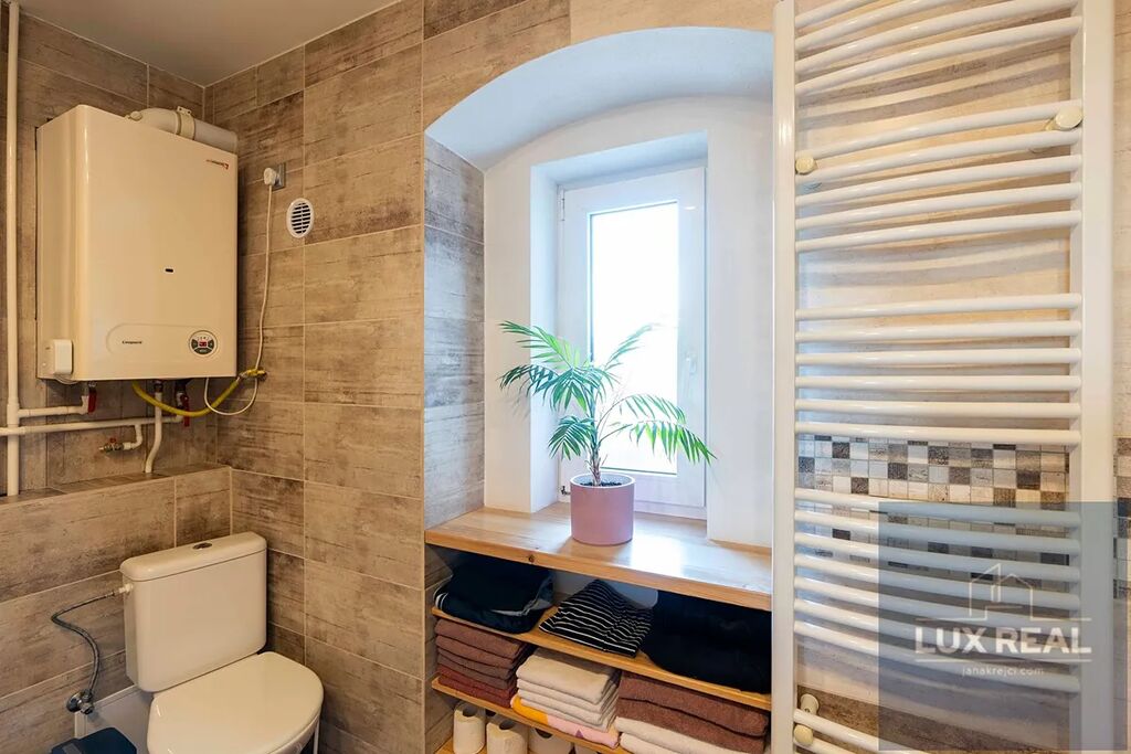 Vytápění zajištuje plynový kotel, plastová okna, na zemi plovoucí podlaha.
