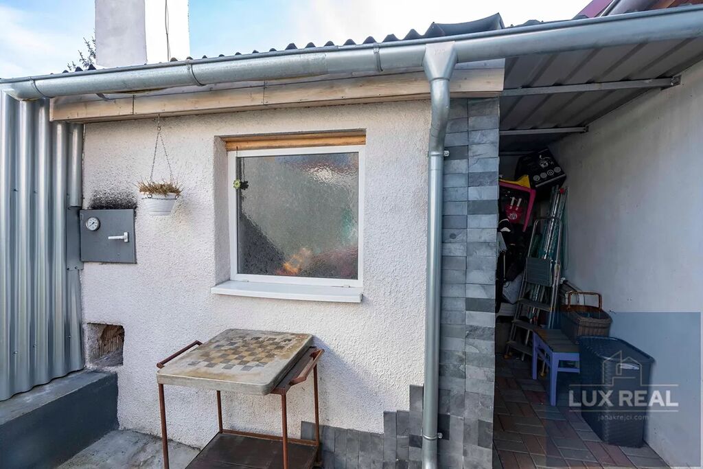 Za domem je posezení, udírna a zděný zahradní domek a studna.