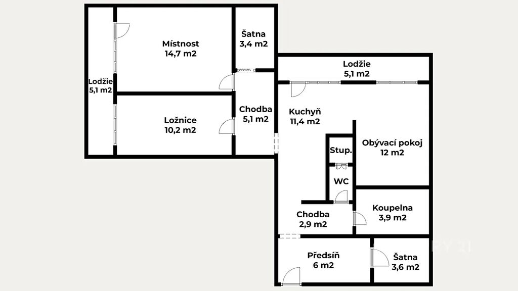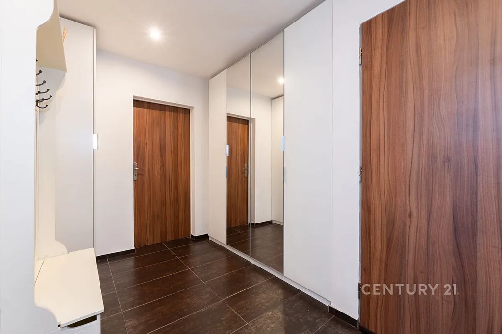 • Moderní kuchyňská linka (LED podsvícení) s vestavnými spotřebiči (myčka a elektrická trouba s plynovou varnou deskou) je propojena s obývacím pokojem a jídelním koutem. Podél celého prostoru vede lodžie, obývací prostor je tak vzdušný a světlý