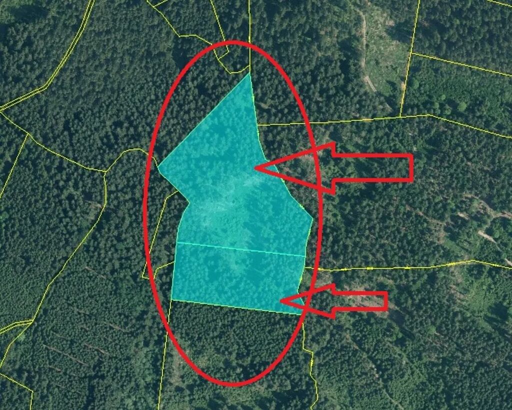 - p.č. 409/4 vedená jako lesní pozemek o celkové výměře 11 835 m2, vlastníme podíl 1/16 tedy 740 m2 (stáří lesa 131 let - zastoupení dřevin smrk, stáří lesa 16 let - zastoupení dřevin smrk)