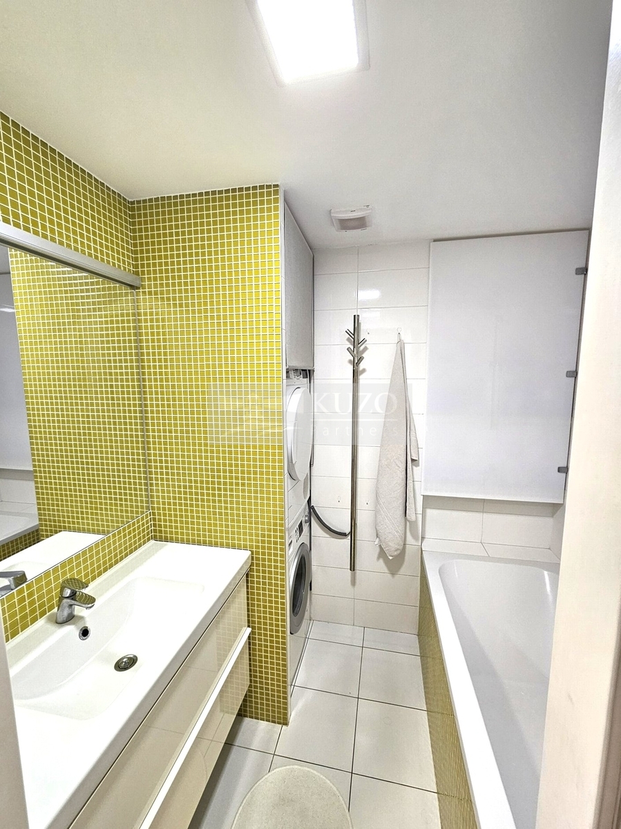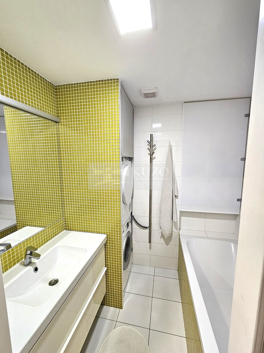 Byt sestává ze vstupní chodby (8,3 m2), prostorného obývacího pokoje s kuchyňským koutem (31,8 m2), 2 neprůchozích pokojů (12,5 m2 a 11,6 m2), koupelny (3,7 m2), WC (1,1 m2), komory (2,4 m2) a lodžie (7 m2). Byt prošel pečlivou a promyšlenou rekonstrukcí, která v sobě spojuje moderní styl, funkčnost i příjemnou domácí atmosféru. Majitelé věnovali pozornost každému detailu. Díky tomu vzniklo mnoho úložných řešení i harmonické ladění barev a materiálů. Z části obývacího pokoje navíc vznikla elegantní vestavěná místnost, kterou lze využít jako pracovnu nebo ložnici. Na základě tohoto chytrého řešení se z bytu stalo pomyslné 4+kk - se dvěma samostatnými dětskými pokoji a útulnou ložnicí/pracovnou pro rodiče. Byt tak díky tomu nabízí ideální kombinaci otevřeného prostoru pro společné chvíle i dostatek soukromí pro každého člena rodiny. Je to místo, které působí velmi útulně a zároveň moderně. Velkou devízou bytu je také možnost využívat skladový prostor 9,9 m2 s denním světlem a otevíracím oknem v posledním patře domu, který mají majitelé pronajatý od SVJ na dobu neurčitou.