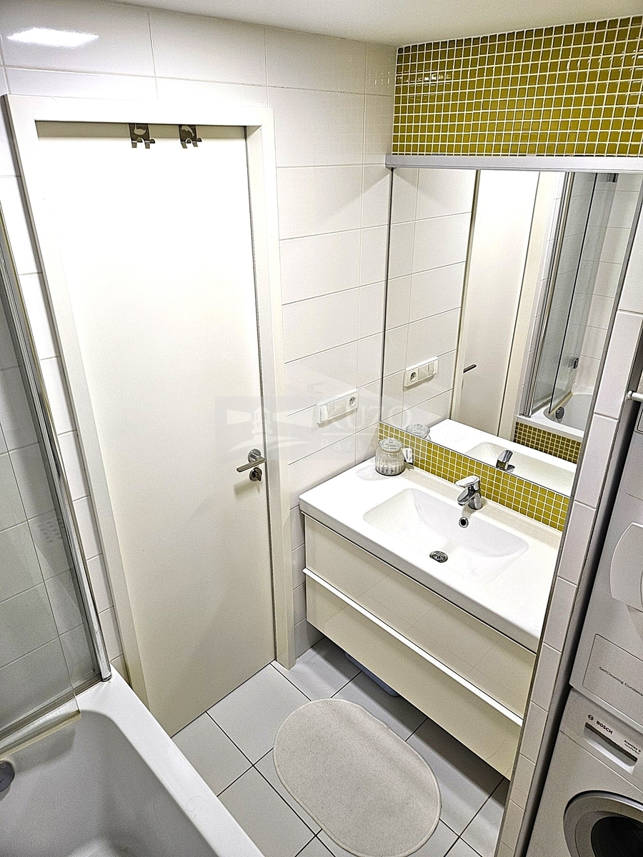 Byt se nabízí částečně vybavený. Zůstane moderní kuchyňská linka s indukční varnou deskou a el. troubou, digestoř, lednice s mrazákem a myčka. Z nábytku pak veškerý vestavěný nábytek a 2 manželské postele. Pračku a sušičku bude možné po dohodě ponechat za úplatu. V koupelně je vana se sprchovou zástěnou a umývadlo. WC s menším umývadlem je zvlášť. Na podlaze je dřevěná plovoucí podlaha, koberce v ložnicích a dlažba. Topení je ÚT. Parkování je možné na ulici. K bytu náleží sklepní kóje 1,5 m2, nacházející se v suterénu domu.