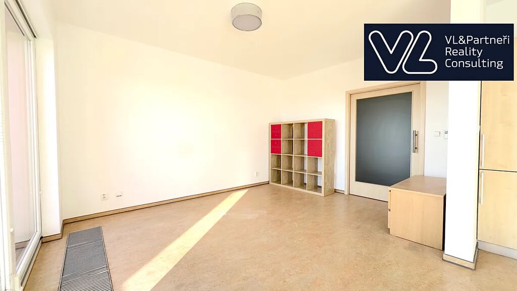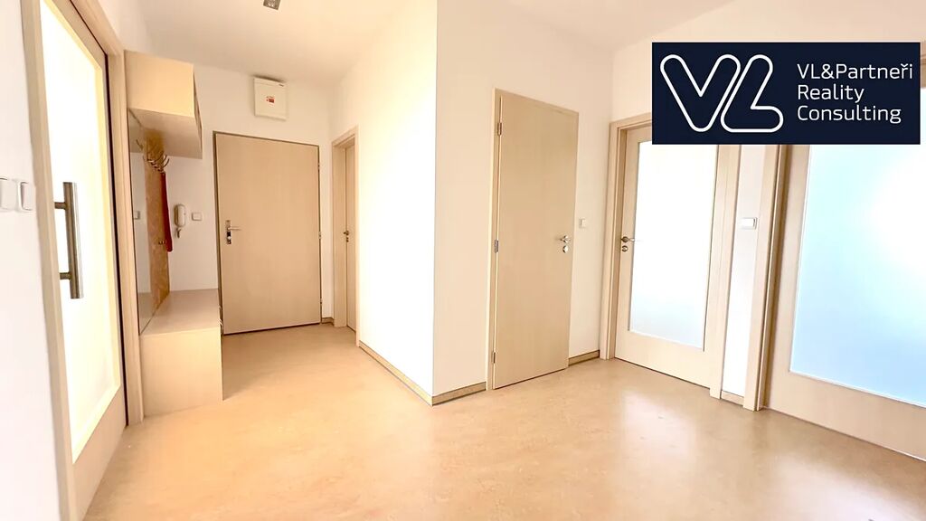 Dominantou bytu je prostorný obývací pokoj s kuchyňským koutem a přímým vstupem na lodžii, která poskytuje ideální místo pro odpočinek i posezení s výhledem. Moderní kuchyňská linka je vybavena vestavěnými spotřebiči – troubou, varnou deskou, myčkou, mikrovlnnou troubou, lednicí a digestoří. Součástí bytu jsou dále dva samostatné pokoje, koupelna s vanou, toaletou a bidetem a prostorná předsíň s dostatkem úložného prostoru. Byt je částečně vybaven.Parkování je možné přímo u domu na veřejných stáních.