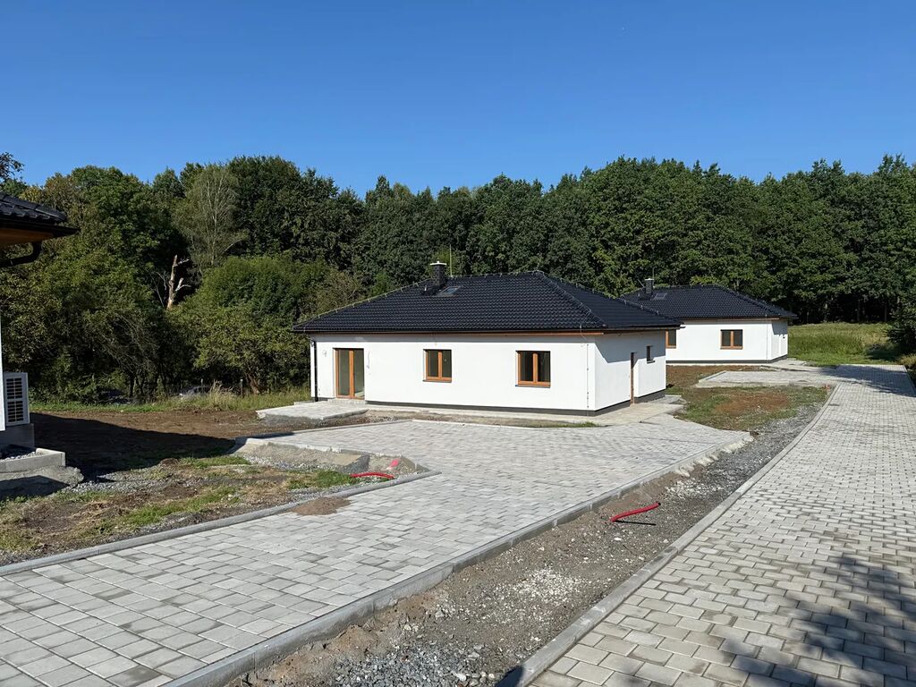 Dům nabízí 86 m2 užitné plochy, energetický štítek ,,B,,. Venkovní terasa, stání pro automobil, příjezd. Vše ze zámkové dlažby.