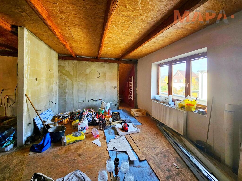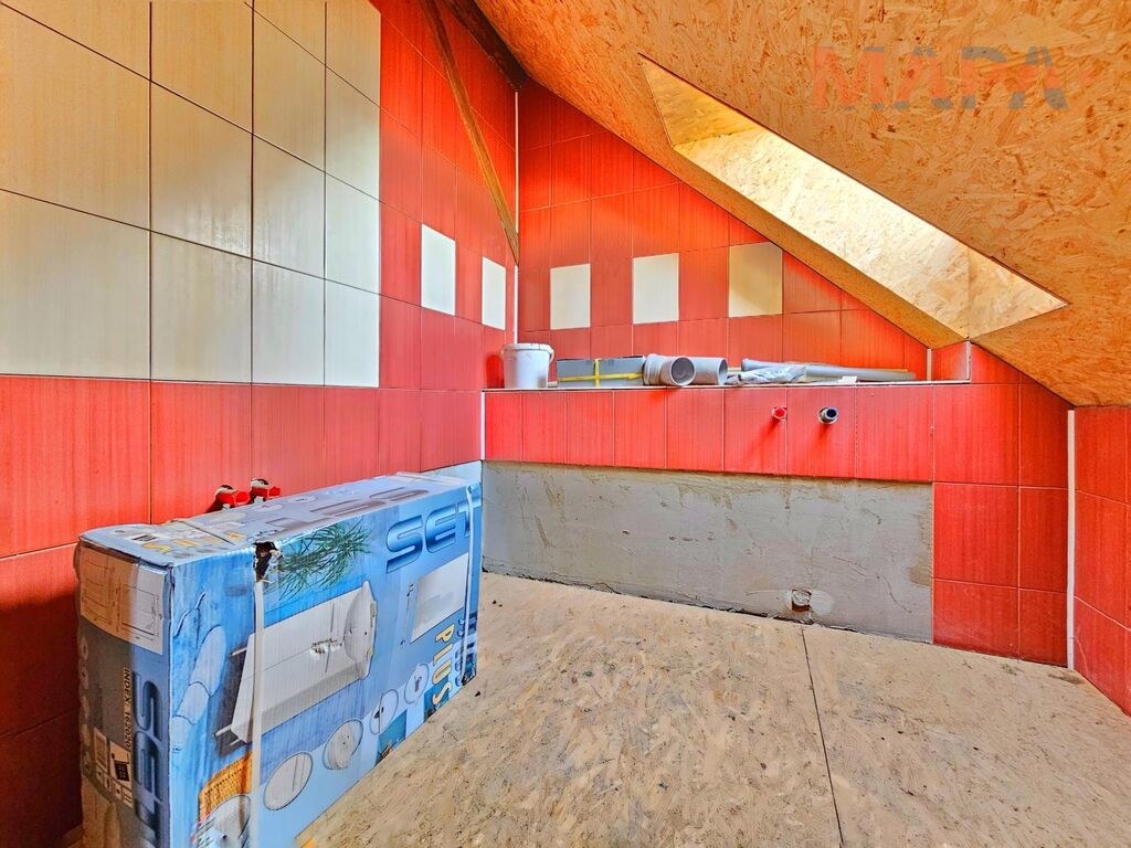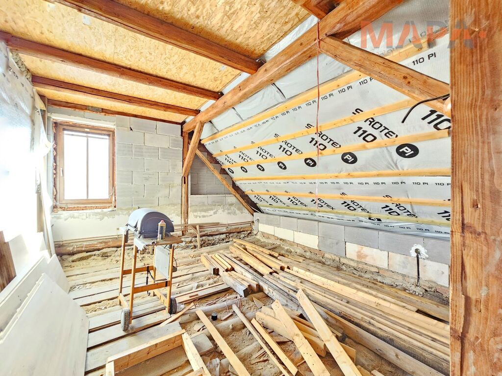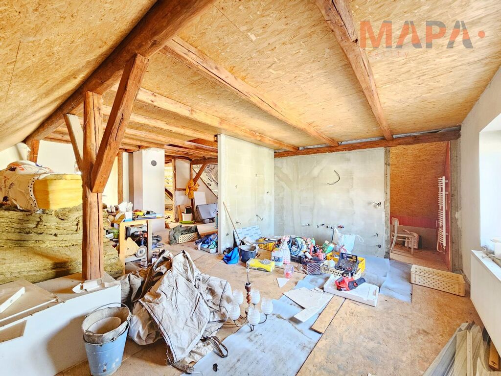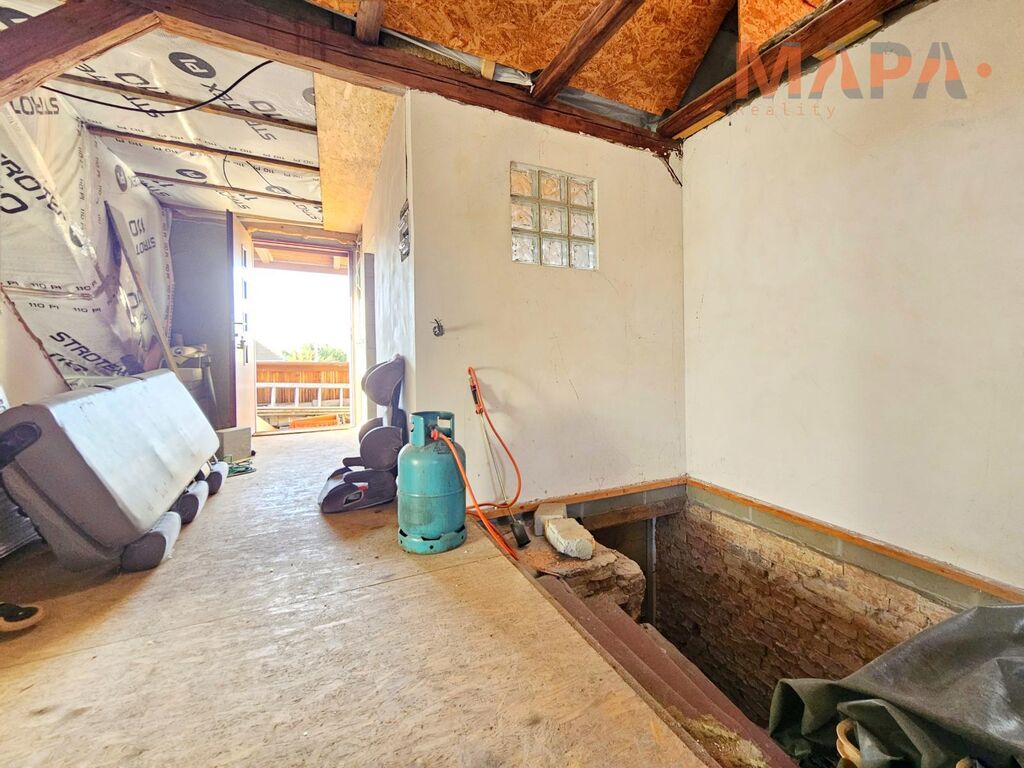 Vrchní patro, do kterého se dostanete vnitřním schodištěm nebo samostatným venkovním vstupem, je ideálně rozvržené a má započatou rekonstrukci. Díky tomu si jej můžete dokončit zcela podle svých představ, ať už jako samostatné bydlení pro děti, rodiče či pronájem, nebo třeba jako kancelář, ateliér či menší apartmán.
