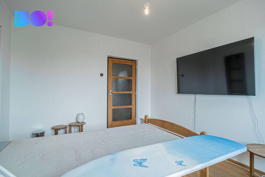 - Na střeše domu je nově instalovaná fotovoltaická elektrárna, která zajišťuje ohřev vody a může být využita i pro elektrické vytápění. Výrazně tím snížíte náklady na provoz.