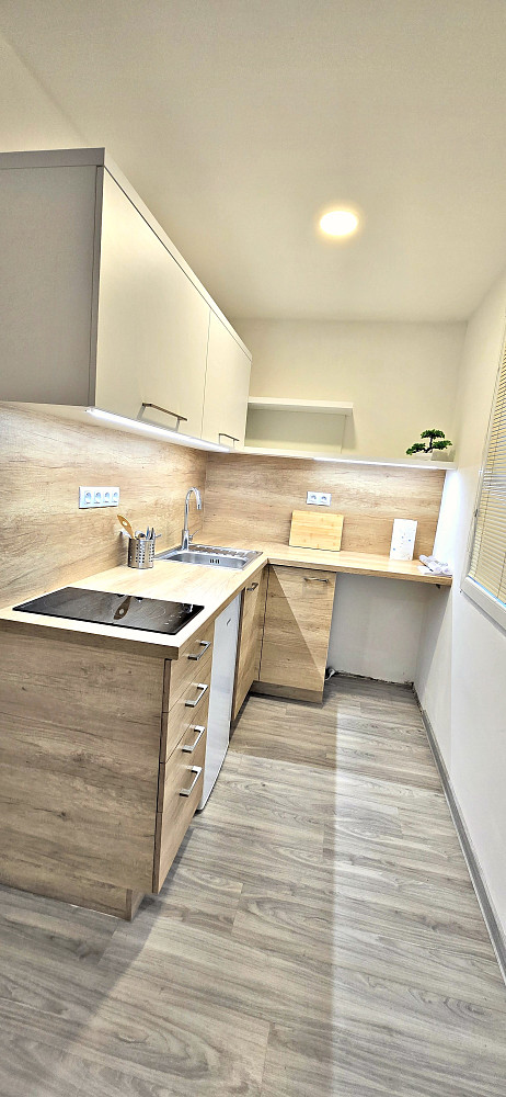 32 m², 1. patro panelového domu. Po kompletní rekonstrukci, částečně zařízené.