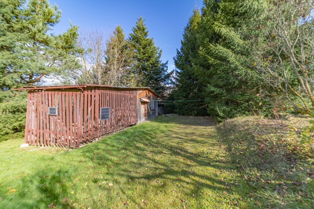 Pozemek je kompletně oplocený a plně vybavený pro okamžité využití či zahájení stavby. K dispozici je dřevěná dílnička s dřevníkem. Největší benefit představuje vrtaná studna, která zajišťuje kvalitní a nezávislý zdroj vody.