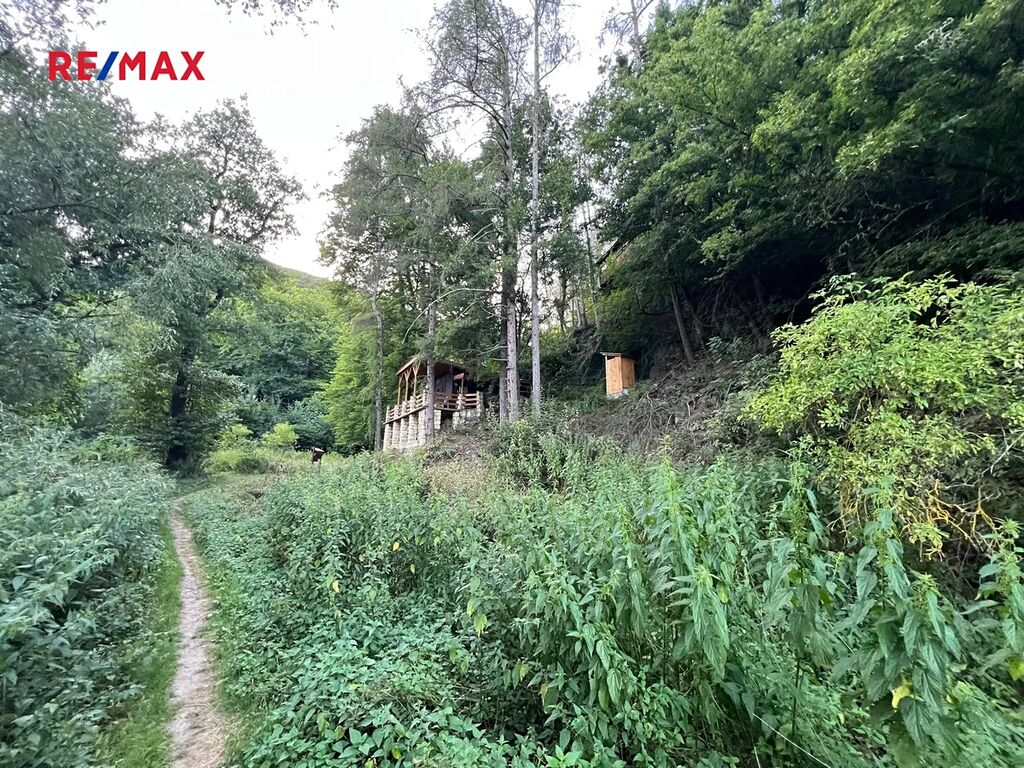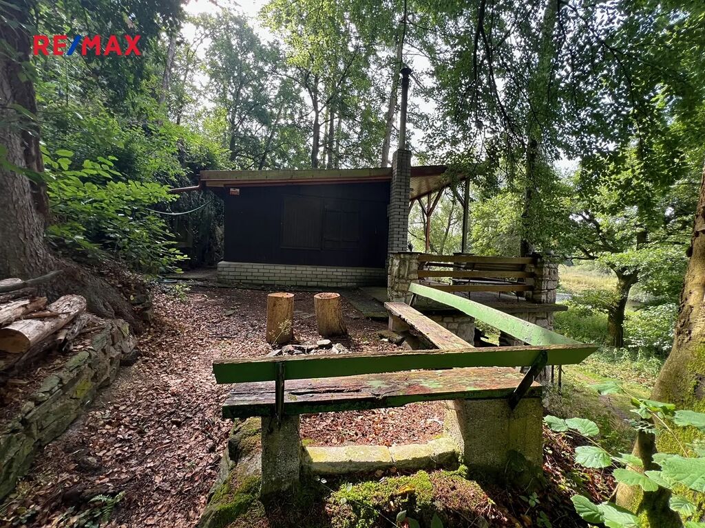 Vlastněný pozemek pod chatou je 56 m2, spoluvlastnický podíl na okolních pozemcích je 1/13 z rozlohy 70 148 m2, tedy 5 396 m2. A součástí prodeje je též věcné břemeno na pozemcích obce Zbečno.