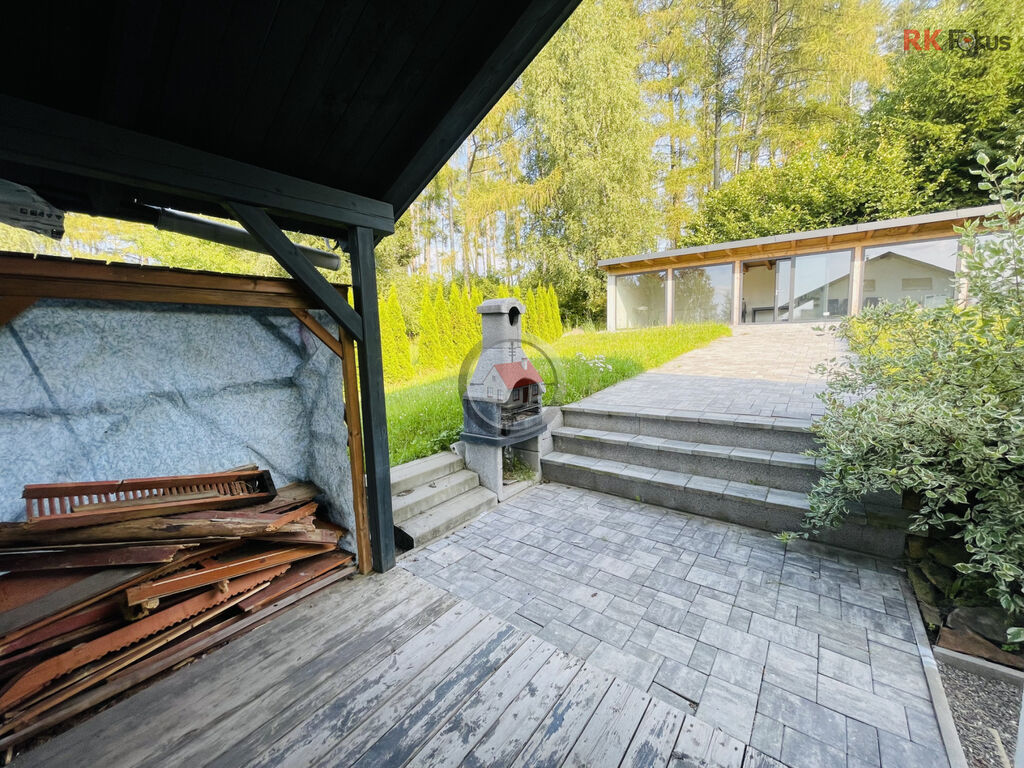Za chatou se nachází velká zastřešená terasa o ploše cca 90 m², ideální pro letní posezení nebo grilování s přáteli. Na pozemku je navíc garáž (20 m²).