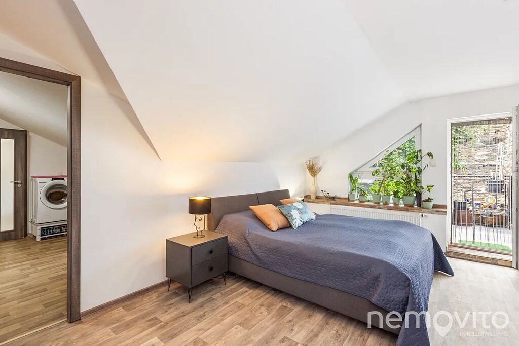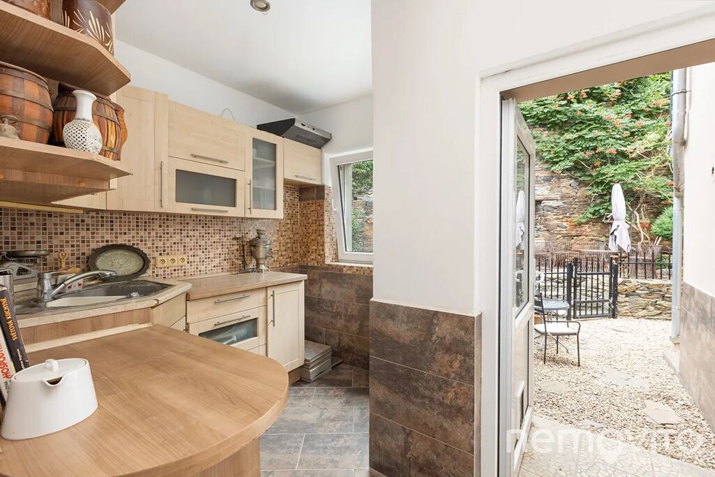 Dům po kompletní rekonstrukci v roce 2015, jehož pozemek ohraničuje část autentické středověké hradby, která tvořila část městského opevnění. Využívat ho lze i vícegeneračně, protože na každém podlaží nabízí kuchyni i koupelnu. Na ploše 151 m2 tak nabízí 3 obytné místnosti dole a 3 nahoře. Letos dostal nová okna do ulice a v roce 2024 novou technologii v bazénu.