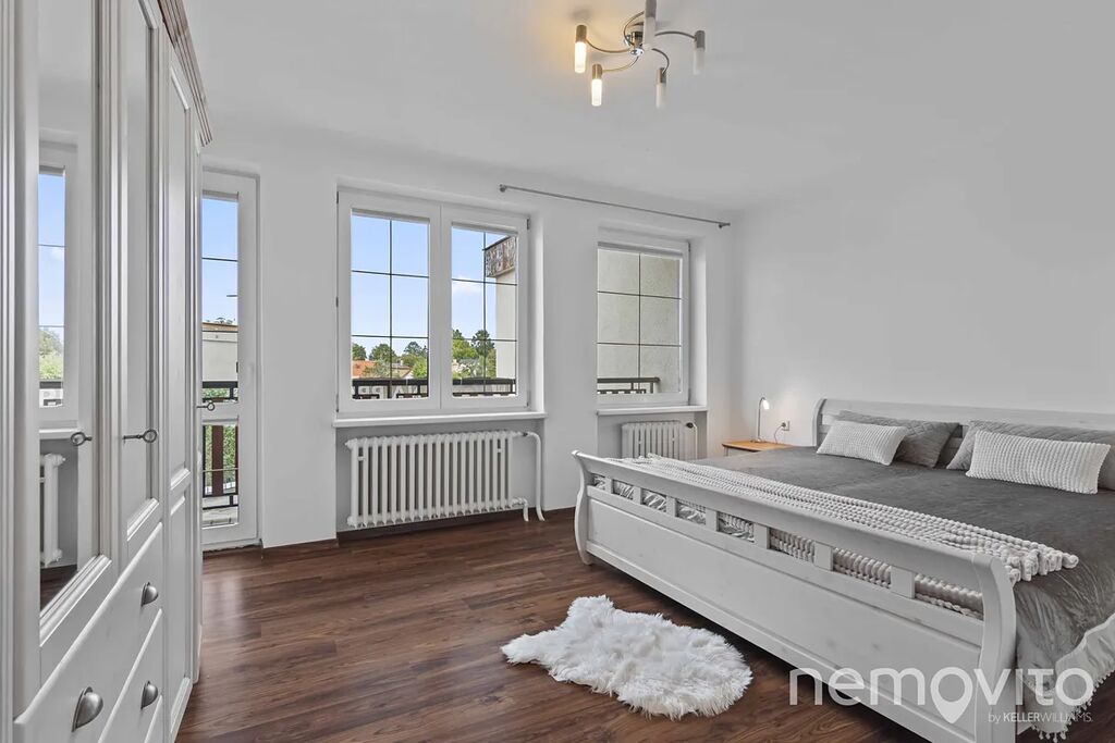 V patře najdete ložnici se šatnou a lodžií, dva pokoje a koupelnu s vanou.