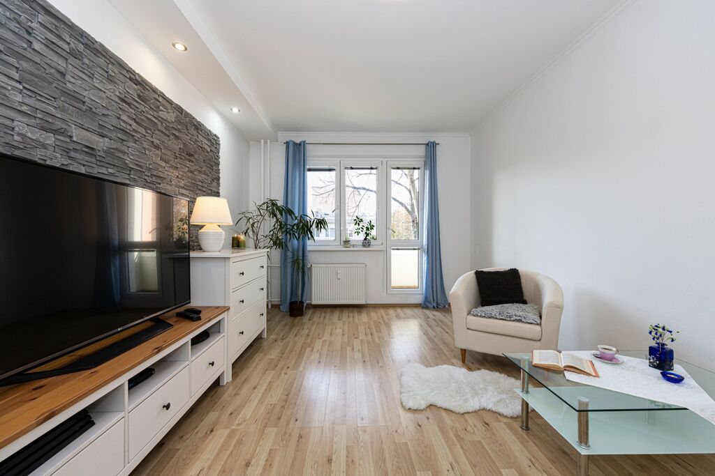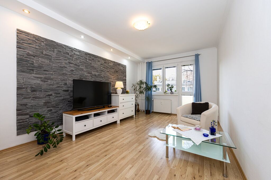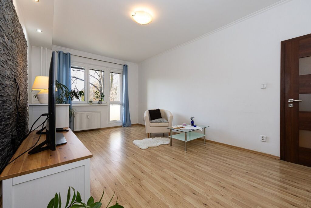 Byt prošel pečlivou rekonstrukcí – nové jádro, rozvody, radiátory, podlahy i kuchyň. Oba pokoje jsou neprůchozí. K bytu náleží sklepní kóje.