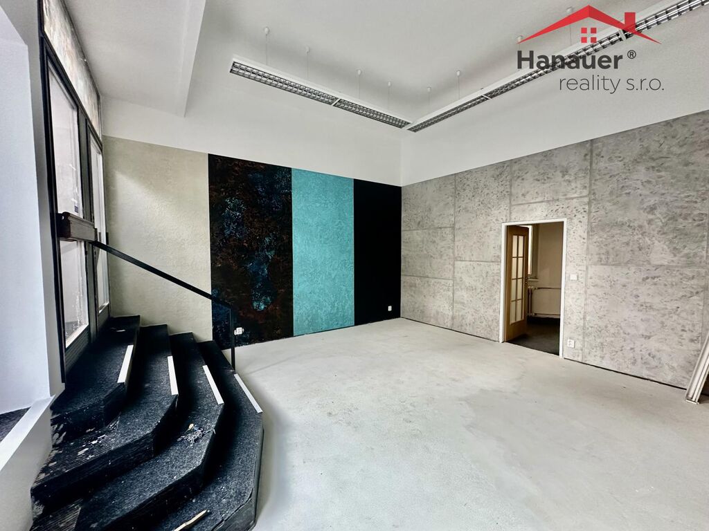 Součástí pronájmu jsou kuchyňka, toalety a další zázemí. Prostor nabízí širokou škálu využití, lze jej případně rozdělit na dvě části. Jedna část byla využívána jako showroom uměleckých stěrek větší místnost s výlohou a vlastní kanceláří druhá část je vhodná pro další obchodní či kancelářské účely. Preferujeme pronájem celého prostoru, aby novému nájemci vznikla maximální flexibilita. Prostor je čerstvě vymalován, součástí je i klimatizace.