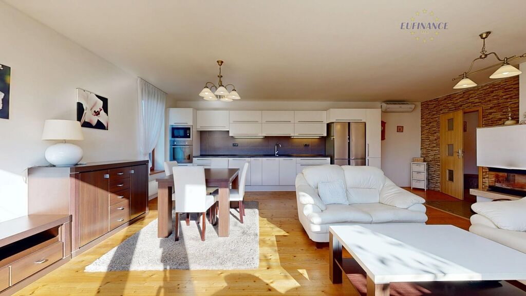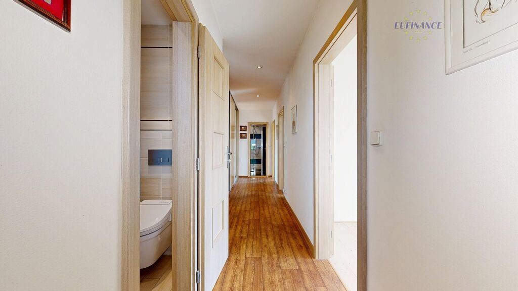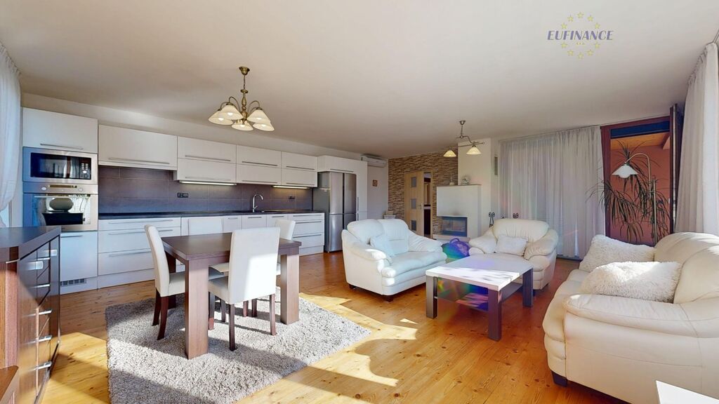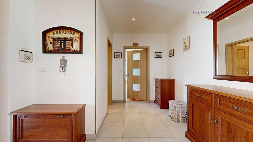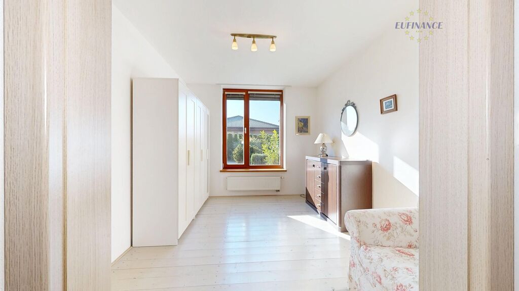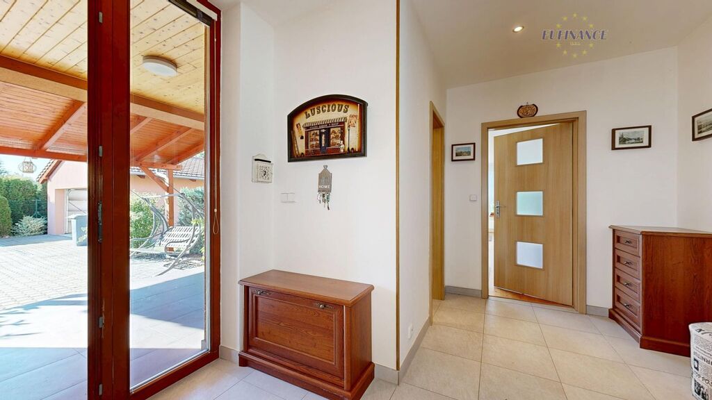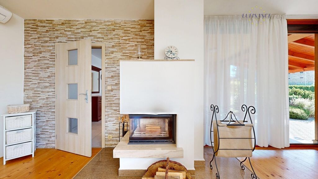Dispozici domu je možné shlédnout ve virtuální prohlídce nebo v přiloženém půdoryse. Celé přízemí je prostorné a slunné. V celém domě jsou dřevěná euro okna s trojskly, ve všech pokojích elektronické venkovní rolety, krásné dubové podlahy a dlažba (technická místnost a koupelna). Rozvody elektřiny a topení jsou v mědi, voda v plastu. Celý dům je vytápěn úsporným elektro kotlem do radiátorů. V obývacím pokoji je dále k dispozici klimatizace a krb s kvalitní krbovou vložkou. Do domu jsou kromě plynu přivedeny veškeré inženýrské sítě (obecní vodovod a kanalizace, elektřina 230 a 380 V) vč. internetu. Na zahradě je k dispozici kopaná studna, která byla určena k napuštění bazénu, který se však nerealizoval. Veškeré vybavení domu i nábytek jsou součástí kupní cena.
