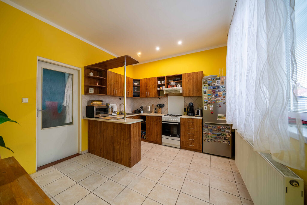 Vytápění i ohřev vody je zajištěn plynovým kotlem.