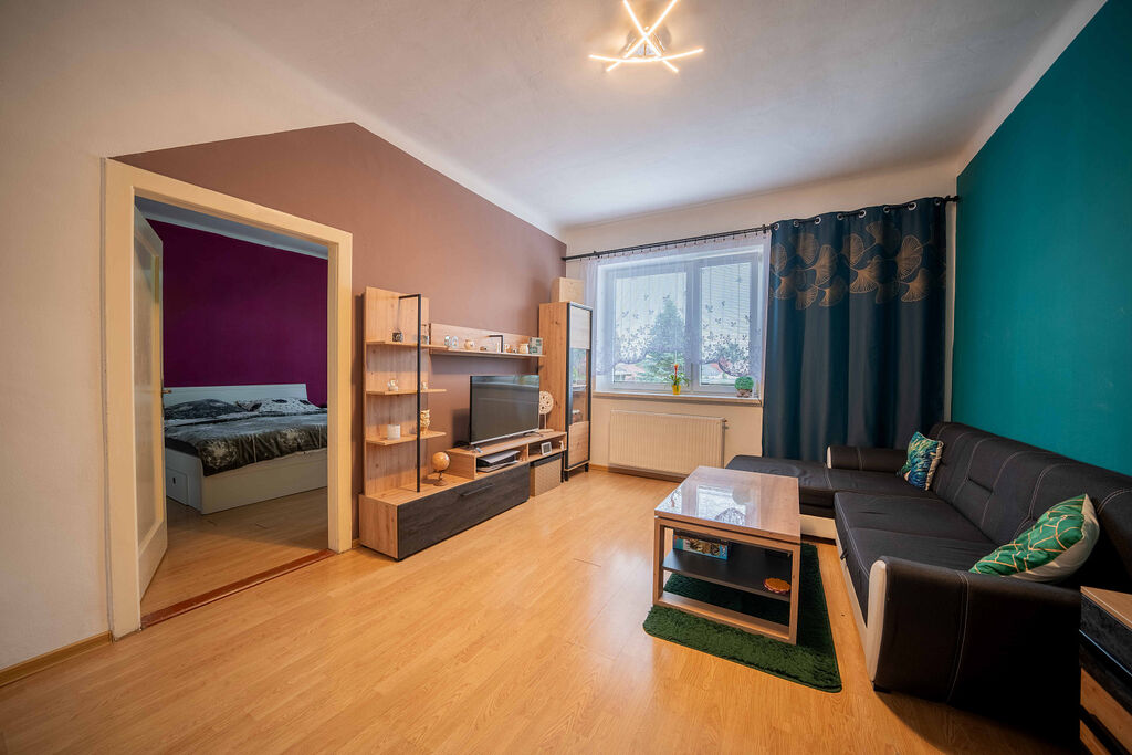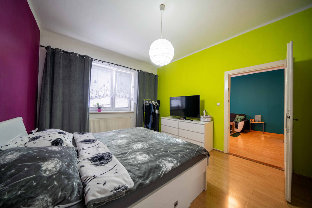 Byt se nachází v 2. patře čtyřpodlažního domu bez výtahu. Fotografie s nábytkem jsou pouze orientační. Byt se pronajímá bez nábytku a je vymalován na bílo. K dispozici budete mít kuchyňskou linku, prostornou ložnici, obývací pokoj, koupelnu s vanou a samostatné WC.