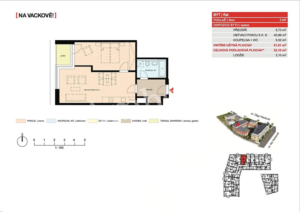 Byt nabízí užitnou plochu 54 m2, což poskytuje dostatečný prostor pro pohodlné bydlení. Moderní vybavení a dokonalé provedení interiéru uspokojí i náročnější zájemce. Navíc byt disponuje lodžií o ploše 3 m2, která je ideálním místem pro chvíle odpočinku či posezení s přáteli.