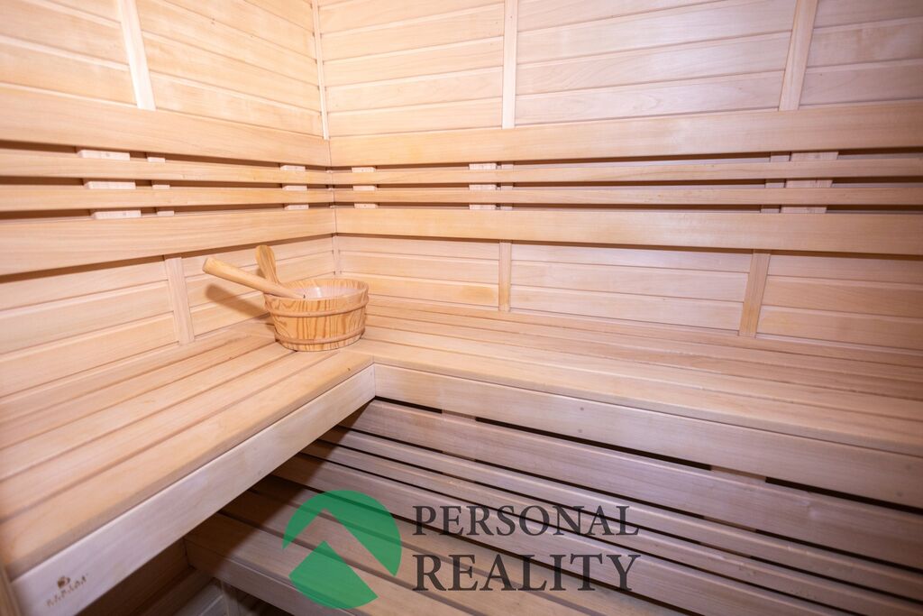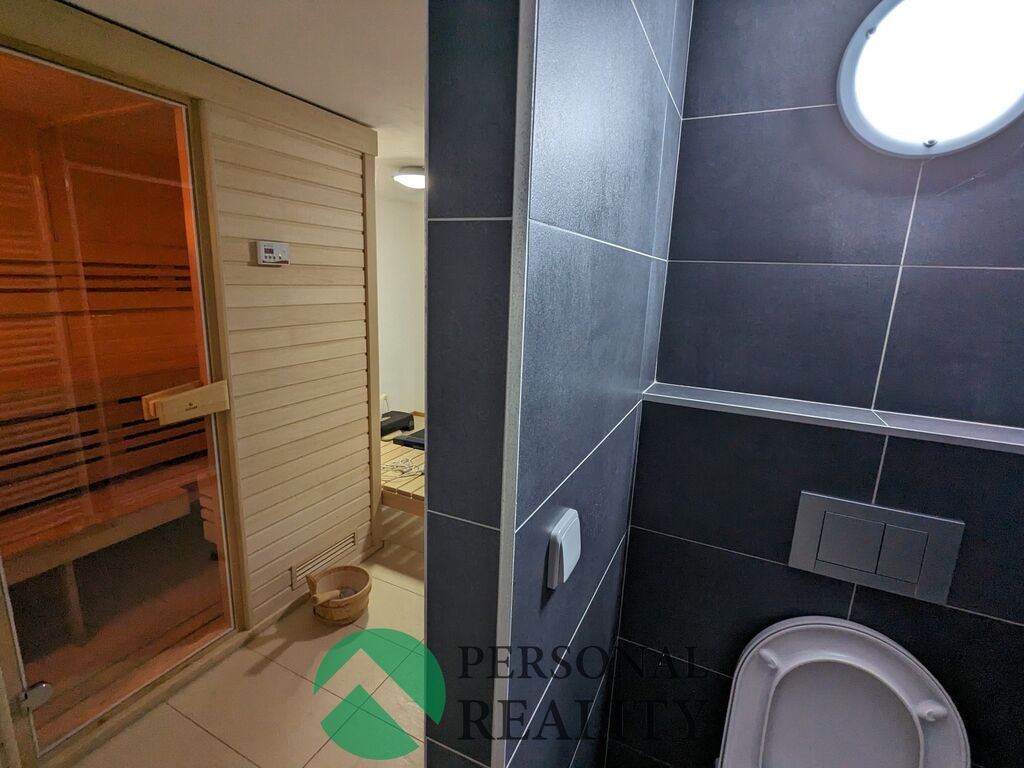 Suterén: hudební atelier/posilovna, wellness místnost se saunou, WC a sprchovým koutem, sklad a technická místnost (bojler a kotel).