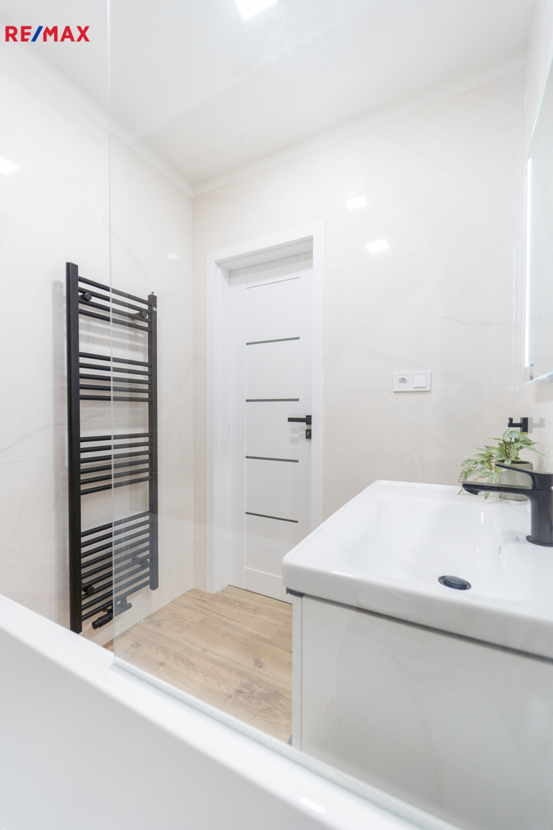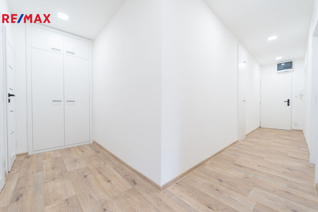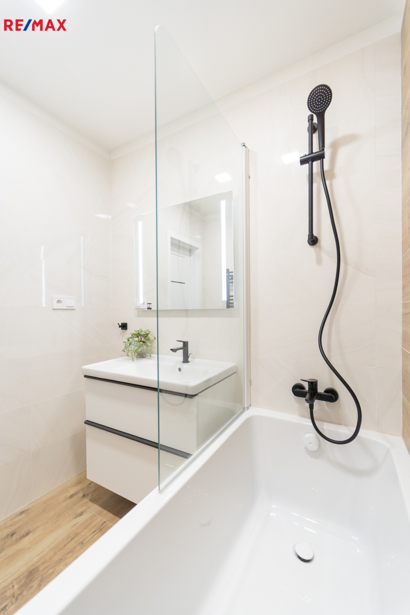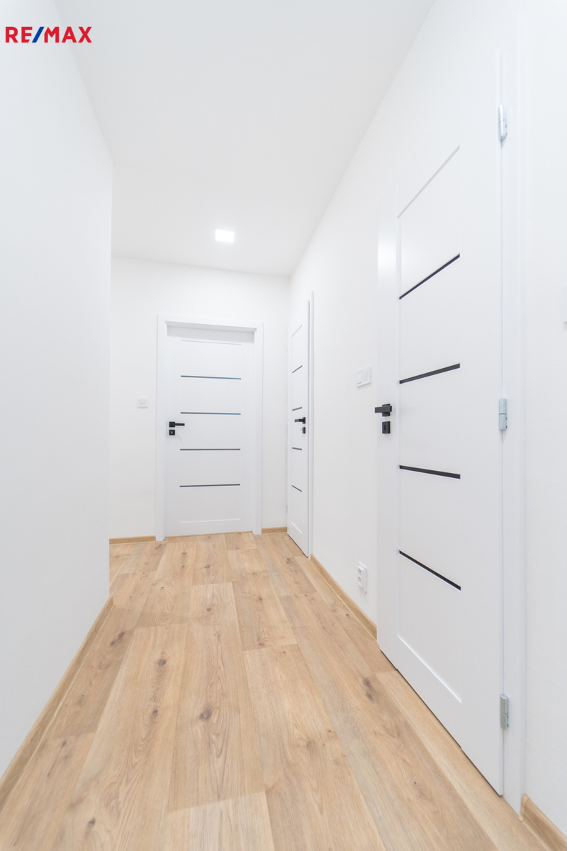 Byt prošel v roce 2025 kompletní rekonstrukcí včetně rozvodů elektřiny, vody i odpadů. Byla instalována nová kuchyňská linka na míru s integrovanými spotřebiči, nová koupelna s vanou, sprchou a sanitou, vinylové podlahy, nové omítky, radiátory a interiérové dveře. Okna jsou plastová s izolačním dvojsklem. Celá jednotka je připravena k okamžitému nastěhování bez dalších investic.