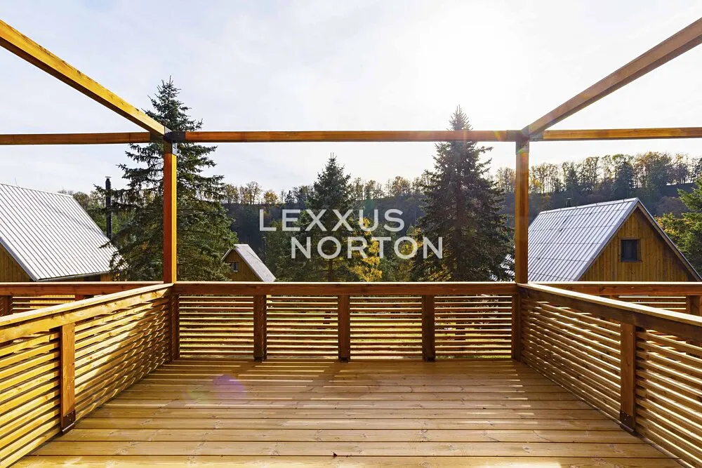 Každý apartmán s obytnou plochou 47,6 m² je navržen tak, aby nabízel maximální komfort pro krátkodobé i dlouhodobé pobyty. V přízemí se nachází obývací prostor s kuchyňským koutem, koupelnou a přímým vstupem na terasu s výhledem na okolní lesy. Pod terasou je uzamykatelný prostor o výměře 11 m². Horní patro pak nabízí 2 prostorné ložnice. Moderní koupelna a stylový interiér zajišťují vysoký standard rekreačního bydlení. Apartmány jsou vybaveny kamny, klimatizací, kuchyňskou linkou. K využití je společná zahrada.