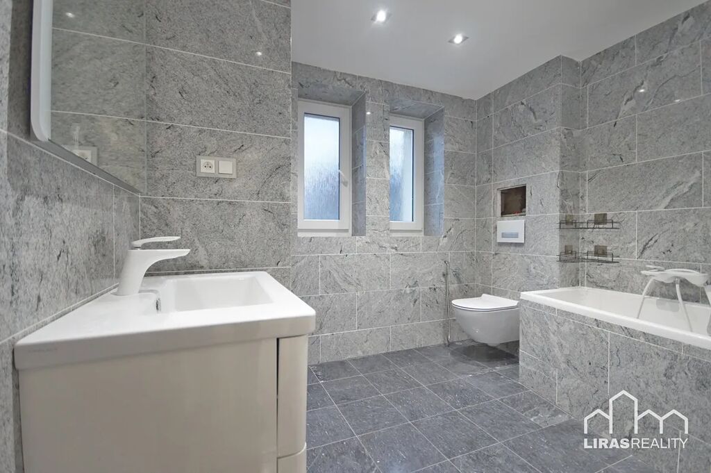 Pronájem bytu 2+1, 51m2, po kompletní rekonstrukci, situovaný ve zvýšeném přízemí domu v klidné ulici Budovatelů v Roudnici nad Labem. Dům je po rekonstrukci, která se dotkla především zateplené fasády, nových vstupních dveří, zateplení stropu sklepních prostor a nové střechy. Samotný byt se skládá z ložnice, obývacího pokoje, kuchyně, koupelny, komory a vstupní chodby, kde umístěna vestavěná skříň. K bytu dále náleží sklep. V bytě jsou bezpečnostní dveře, plastová okna a část zařízení jako jídelní kout a lednice a plně zařízená kuchyňská linka včetně myčky. Byt je po vymalování ihned k nastěhování. Nemovitost se nachází v klidné lokalitě s veškerou občanskou vybaveností. U domu jsou školky, školy, v docházkové vzdálenosti je centrum obce i nákupní retail park. Volné ihned. Nájemné 17 900 Kč + zálohy na vodu 650 Kč + zálohy na elektřinu cca 2 500,-Kč. Pro více informací volejte makléře nemovitosti.