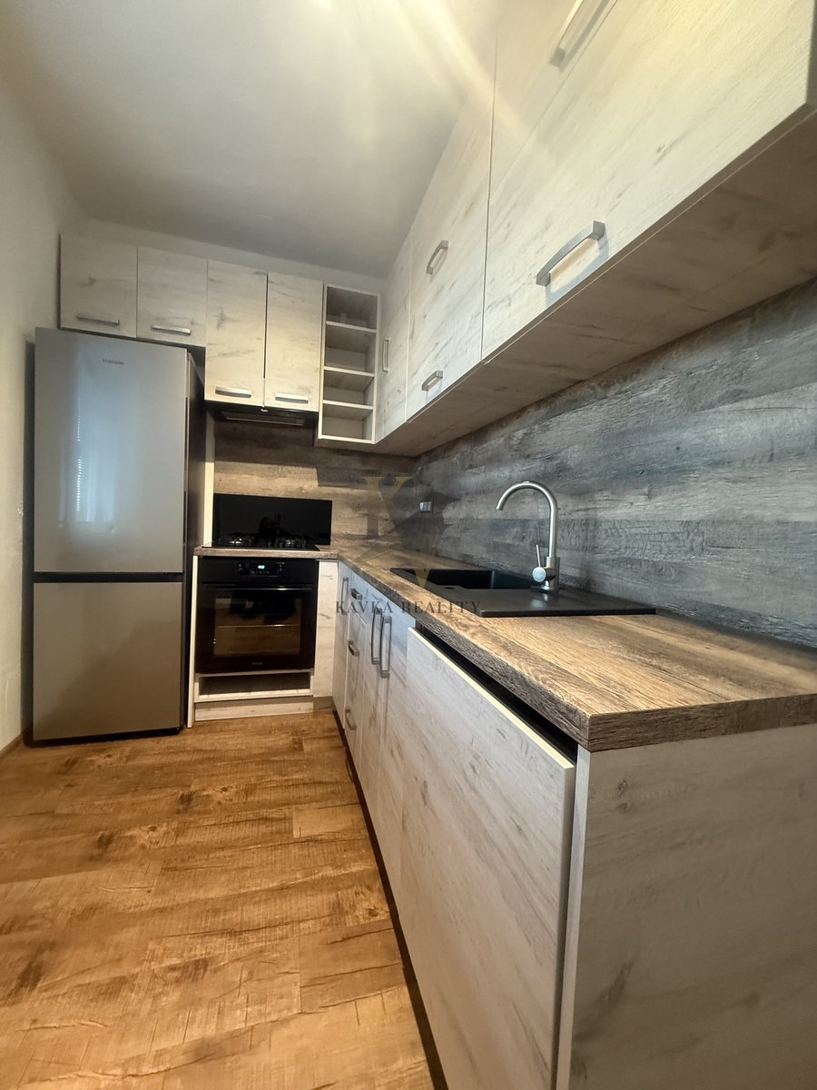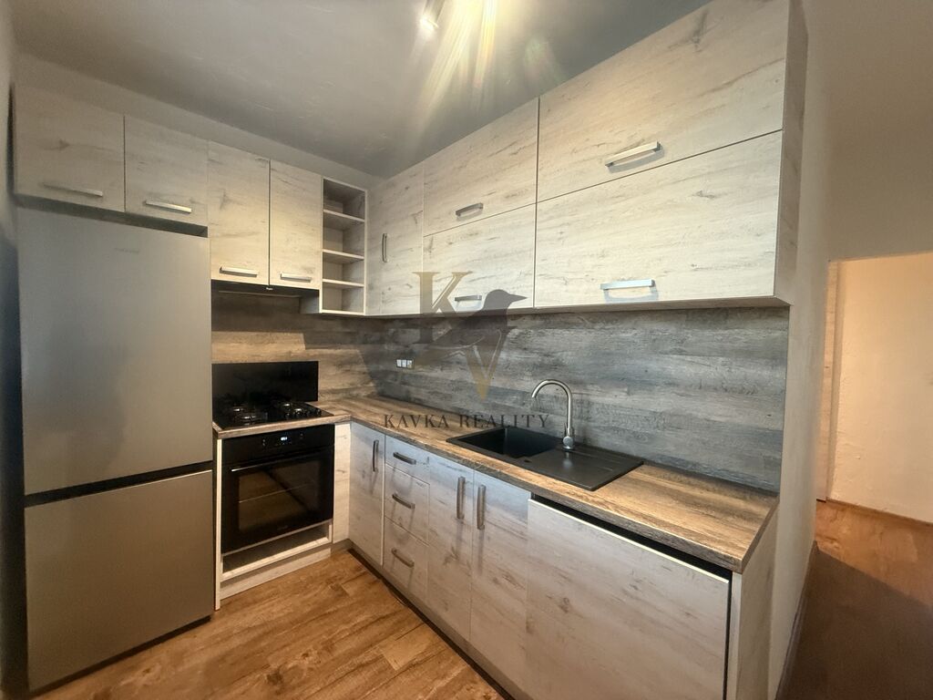 Je po kompletní a krásné rekonstrukci , která proběhla před pár lety , včetně nové rohové kuchyňské linky s elektrospotřebiči ( sklokeramický plynový sporák s horkovzdušnou troubou a odsavačem par, lednici a myčkou ) koupelna a WC nová, zděná-rekonstruovaná- kde se nachází prostorná vana a přípojka na pračku. Plovoucí podlaha se nachází v obývacím pokoji a ložnici . V kuchyni , chodbě v koupelně a na Wc je položená dlažba .