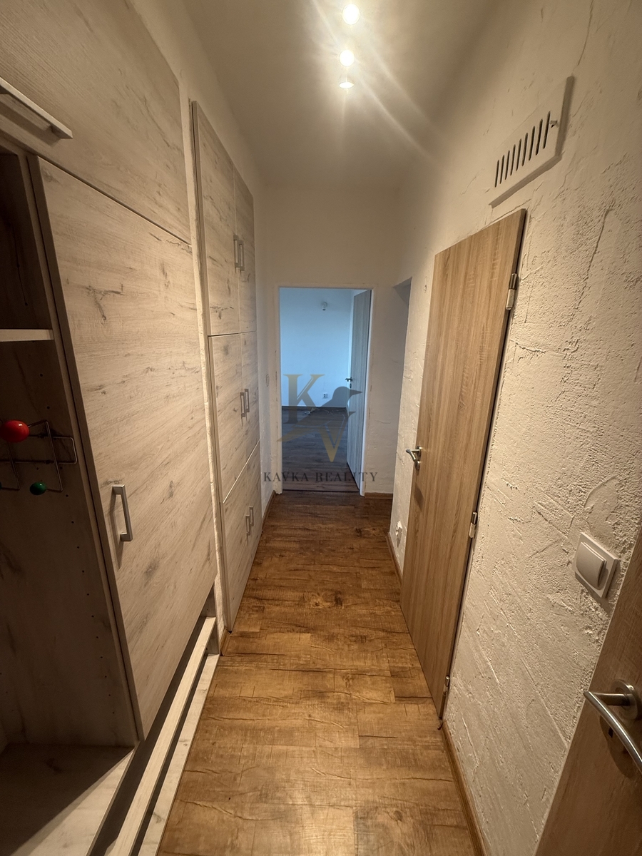 V celém bytě je nová elektroinstalace, Součástí vybavení je také vestavěná skříň s botníkem v chodbě .
