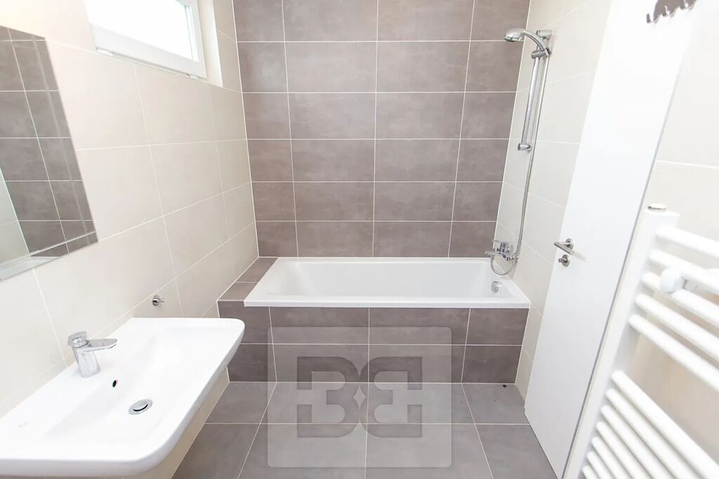 Dovolujeme si Vám exkluzivně nabídnout k dlouhodobému pronájmu krásný částečně zařízený byt 1+KK o velikosti 25,1 m2, nacházející se ve 3.NP menšího bytového domu v Tuchoměřicích, ulice V Kněžívce. Dům byl dokončen na začátku roku 2020. Vstupní dveře bytu vedou do předsíně (3,7 m2), ze které je vstup do obývacího pokoje s kuchyňským koutem (16,7 m2). Z předsíně také vstoupíme do koupelny (4,75 m2). Obývací pokoj je vybaven moderní kuchyňskou linkou se všemi novými spotřebiči (lednice s mrazákem, el. varná deska, digestoř). Obývací pokoj disponuje balkonem plochou 2,5 m2. Koupelna je zařízena vanou, umyvadlem, zrcadlem, topným žebříkem a WC, k dispozici je i pračka. Všechna okna v bytě plastová, další výhodou bytu je klimatizační jednotka.