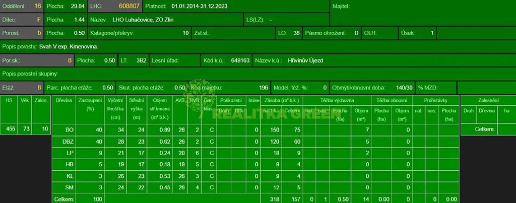 V případě zájmu zašlu LHO + porostovou mapu. Skutečný stav neodpovídá LHO.