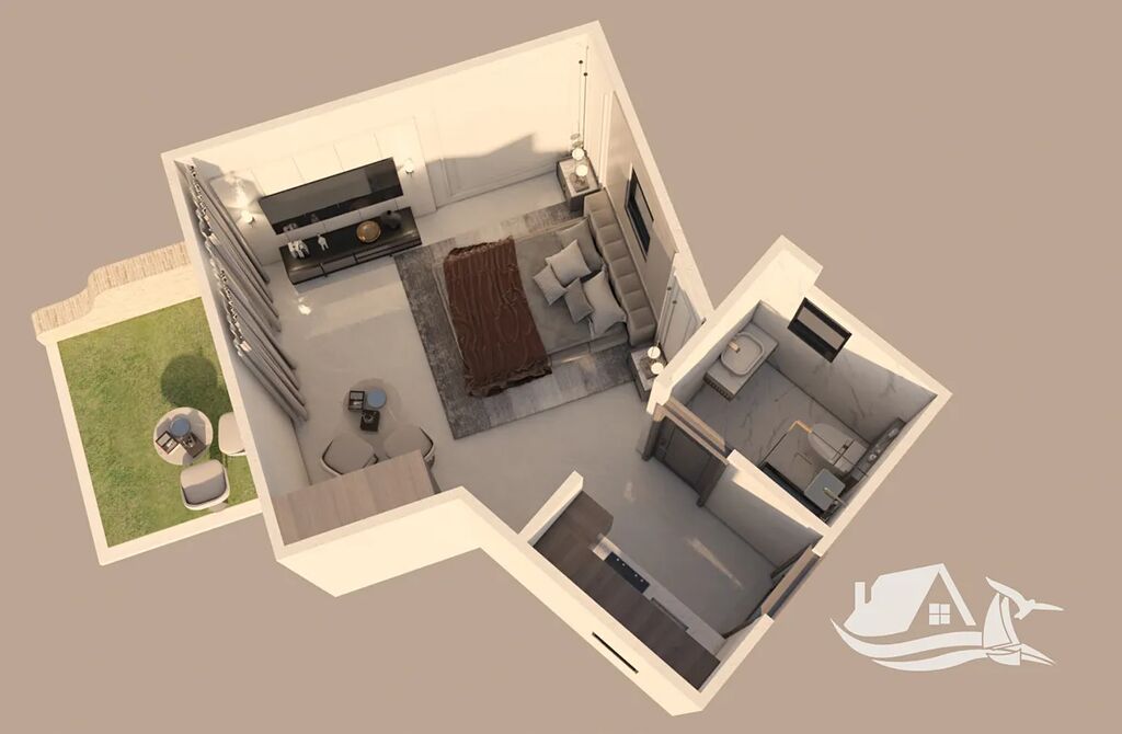 Tento elegantní apartmán – moderní studio o ploše 37 m² – se nachází ve druhém patře výjimečného rezidenčního projektu HAYAT, který spojuje komfort, moderní design a mořskou atmosféru. Z balkonu se otevírá nádherný výhled na moře, který proměňuje každý den v okamžik klidu a inspirace.