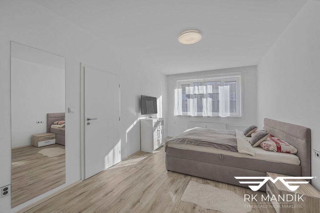 Na obývací prostor navazuje útulná ložnice, která je vybavena psacím stolem a praktickou šatnou. Koupelna je udržovaná, světle obložená a disponuje sprchovým koutem, umyvadlem a toaletou.