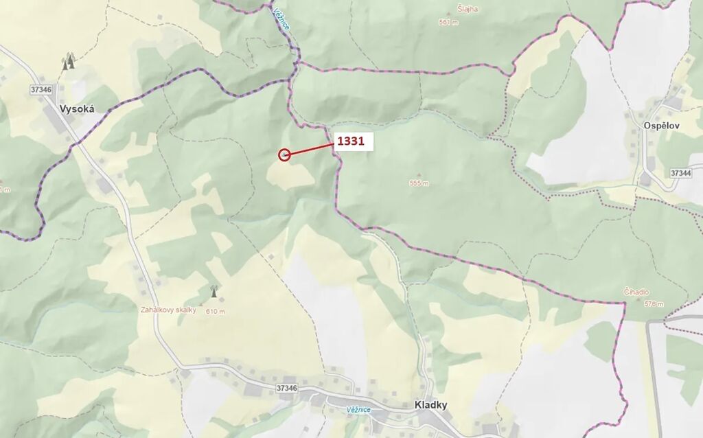 Lesní pozemek o výměře 183 m2, parcelní číslo 1331, podíl 1/1, katastrální území Kladky, obec Kladky, obec s rozšířenou působností Konice, okres Prostějov, Olomoucký kraj.