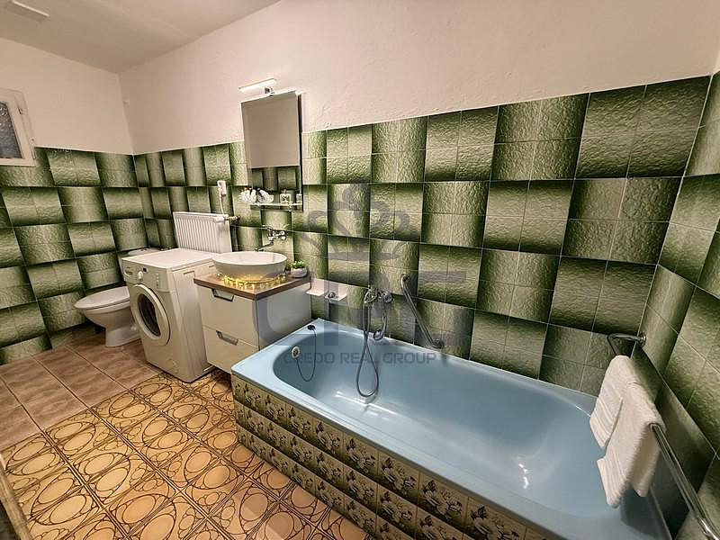 Po schodišti vystoupáme do prvního patra chodby o velikosti cca 11,24 m². Na patře jsou dvě místnosti, z toho jedna je vybavena krásným funkčním krbem o celkové výměře 15,20 m². Tato místnost je plně vybavena nábytkem. Druhá místnost má celkovou plochu cca 17,26 m². V přízemí vedle schodiště nalezneme sklep o výměře cca 4,80 m².