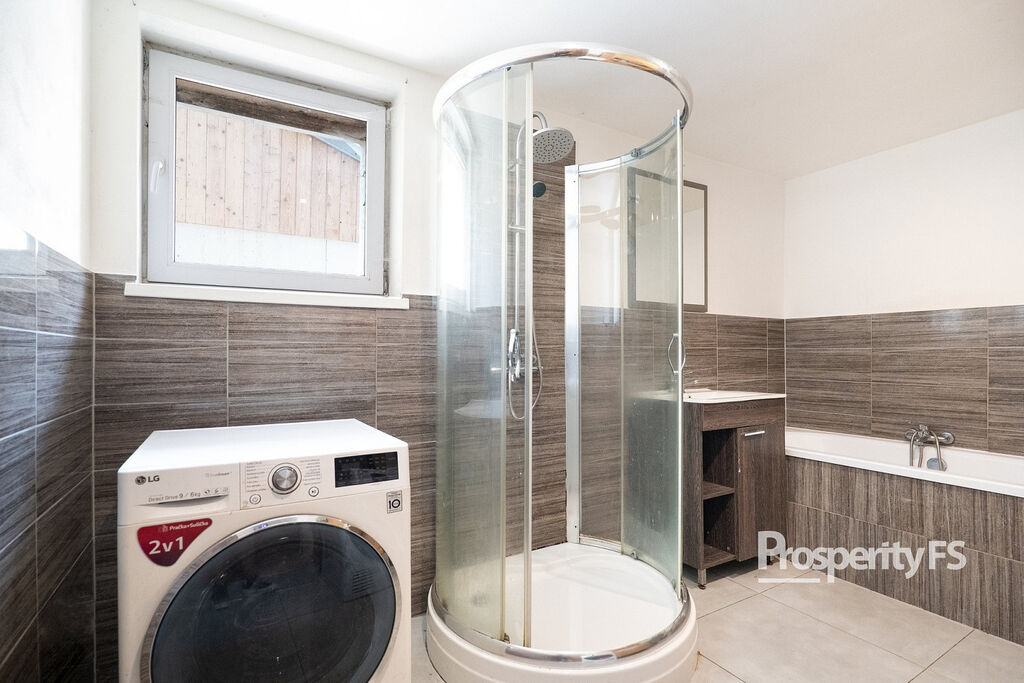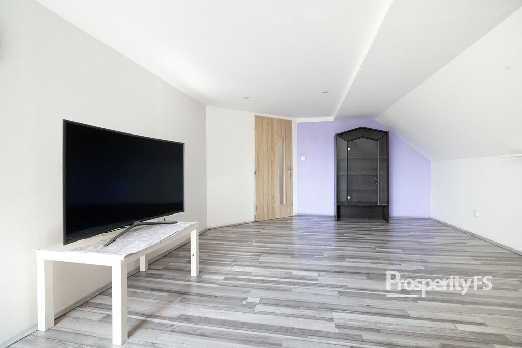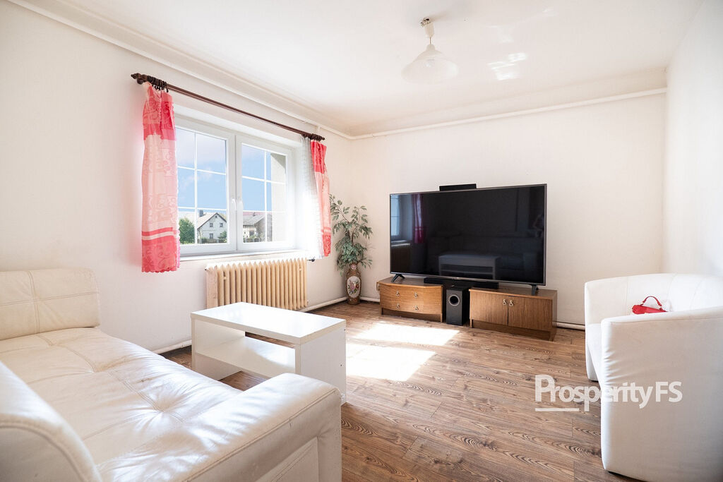 Druhá bytová jednotka je řešena modernějším způsobem – s obývacím prostorem propojeným s kuchyňským koutem, což působí vzdušně a útulně. K tomu dva samostatné pokoje, které mohou sloužit jako ložnice, dětský pokoj či pracovna. Díky své dispozici je tento byt vhodný nejen pro prarodiče, ale také pro mladý pár nebo jako investiční pronájem.