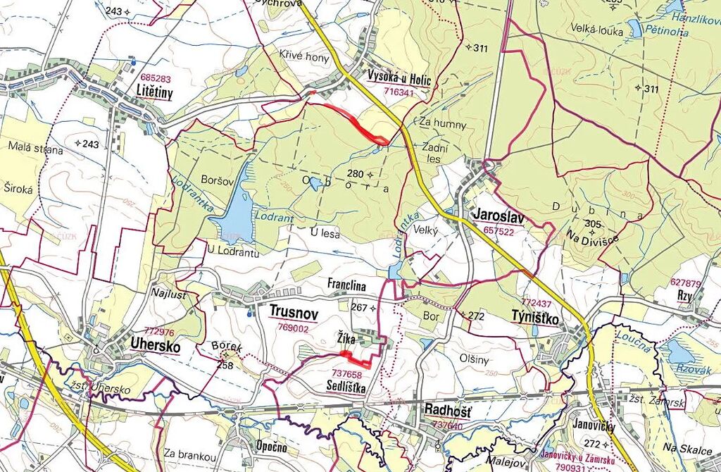 K prodeji je vlastnictví na pozemcích parc. č. 235, 243/4 a 801 zapsaných na LV 493 v KÚ Vysoká u Holic. Dále je k prodeji vlastnictví pozemcích na parc. č. 98/1, 98/2 a 129 zapsaných na LV 59 v KÚ Sedlíšťka.