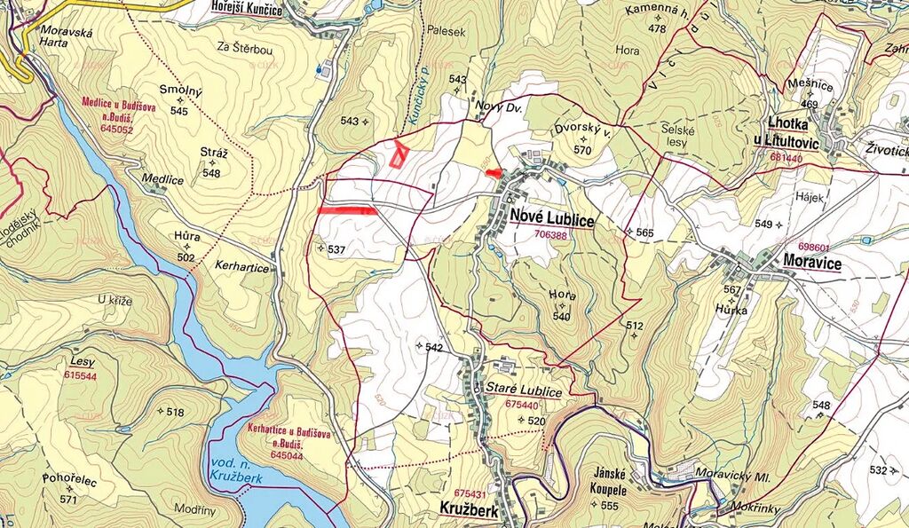 Zemědělská půda od přímého vlastníka: Pozemky jsou zapsané na LV 33 v KÚ Nové Lublice pod parcelními čísly 59/1, 63/3, 63/4, 63/8, 63/9, 77/19, 77/20, 1108 a 1110 a na LV 18 v KÚ Staré Lublice pod parcelními čísly 1008, 1009, 1010 a 1073. Celková výměra pozemků činí 63 407 m2 a z toho je k prodeji 23 778 m2 zemědělské půdy. Z toho trvalý travní porost je 2 506 m2, ostatní plocha 240 m2 a orná půda 21 031 m2.