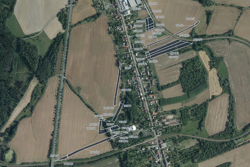 Celková výměra pozemků činí 37 893 m2. K prodeji je pak určeno 6 233 m2. Nabízené pozemky jsou: