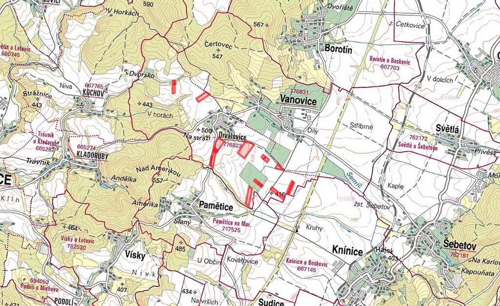 V katastrálním území Drválovice (okres Blansko, Jihomoravský kraj) nabízím k prodeji soubor pozemků o celkové výměře 222 641 m², z nichž je předmětem prodeje 48 665 m².