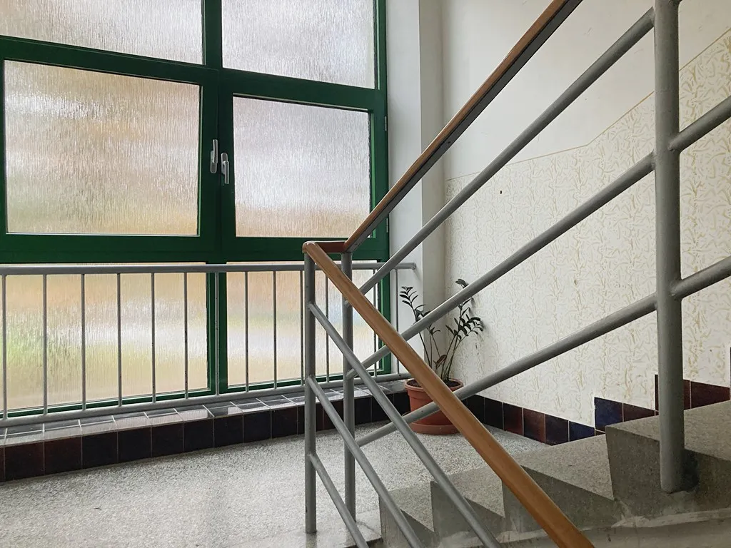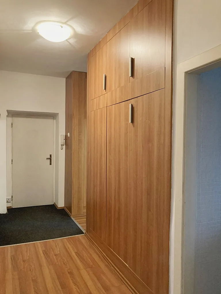 Byt je ve 2. nadzemním podlaží a v dřívější době prošel dílčí rekonstrukcí. Dispozice bytu je velmi dobrá, protože s výjimkou jediného pokoje jsou všechny prostory přístupné z předsíně. V té jsou prostorné vestavěné skříně. Z předsíně, ve které je okno, vstupujete do samostatné koupelny s vanou a dále do odděleného wc s vlastním oknem. Obývací pokoj se vyznačuje značnou světlostí díky 2 oknům a výstupu do malé zimní zahrady, z níž je další výstup na balkón. Okna všech obytných prostorů jsou orientována k východu a jihu do okolní zeleně. Ta v letních měsících zajišťuje zastínění při extrémně teplých dnech.