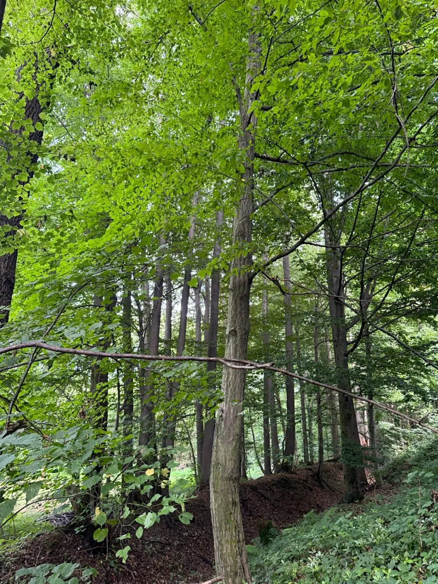 - p.č. 4987 vedená jako lesní pozemek o celkové výměře 4 140 m2, vlastníme 1/2 tedy 2070 m2 (stáří lesa 108 let - hlavní zastoupení je lípa, dub, topol),