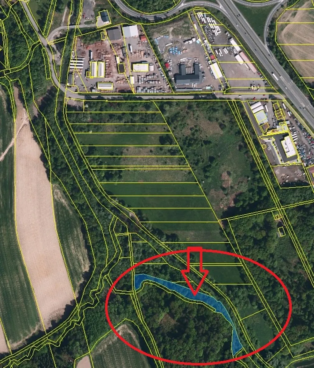 - p.č. 4877 vedená jako vodní plocha o celkové výměře 1 178 m2, vlastníme 1/2 tedy 589 m2,