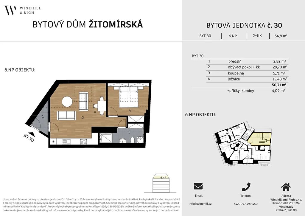 Podlahová plocha bytu 54,8 m². K bytu náleží sklep.