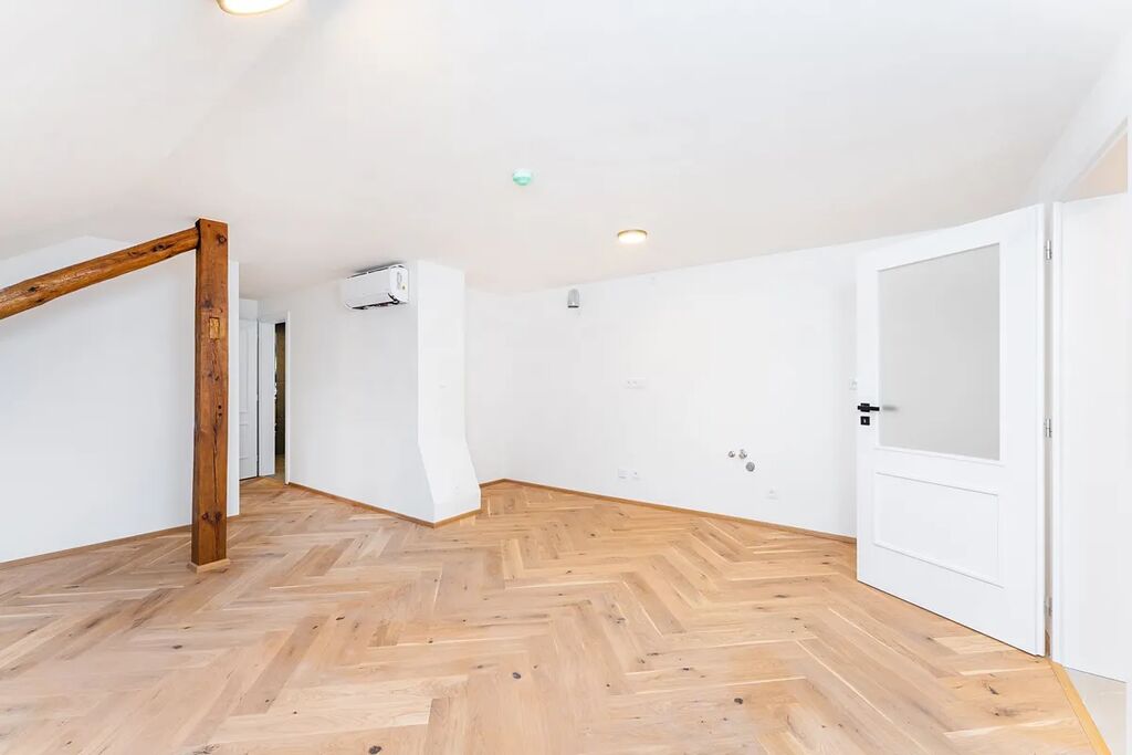 V bytě je instalováno podlahové vytápění LARX, ohřev vody zajišťuje elektrický bojler. V celém bytě je instalována také klimatizace. Na podlahách je kvalitní dřevěná parketová krytina, v koupelnách a na toaletách obklady značky RAKO ve stylu betonu, sanita značky Laufen a baterie Grohe.